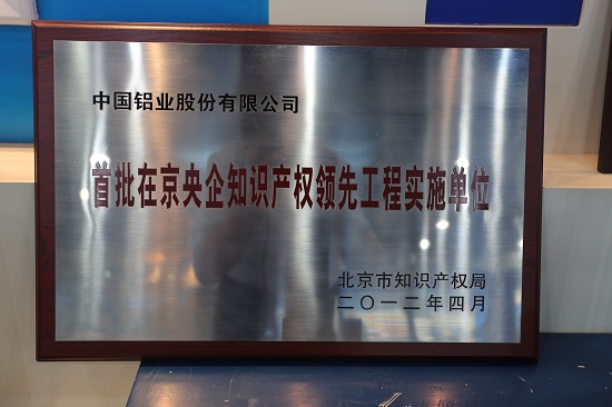 2012年,中铝股份荣获“首批在京央企知识产权领先工程实施单位”奖牌